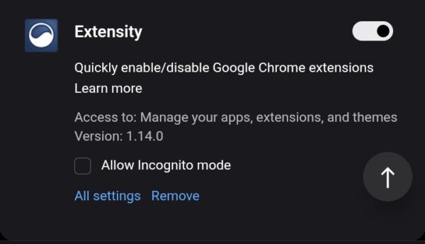 Toggle extensions off to disable them temporarily without uninstalling. This helps when you suspect an extension is causing problems or slowing down your browser. Tap an extension’s name to access its detailed settings page.