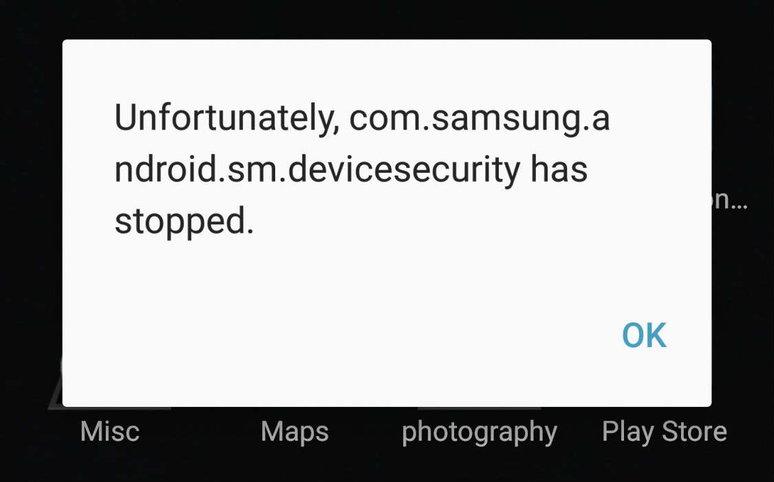 Solve Galaxy S7 Edge “Unfortunately, com.samsung.android.sm.devicesecurity has stopped” Error