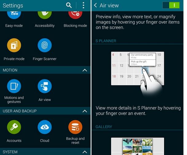 Enable Air View on Galaxy S5