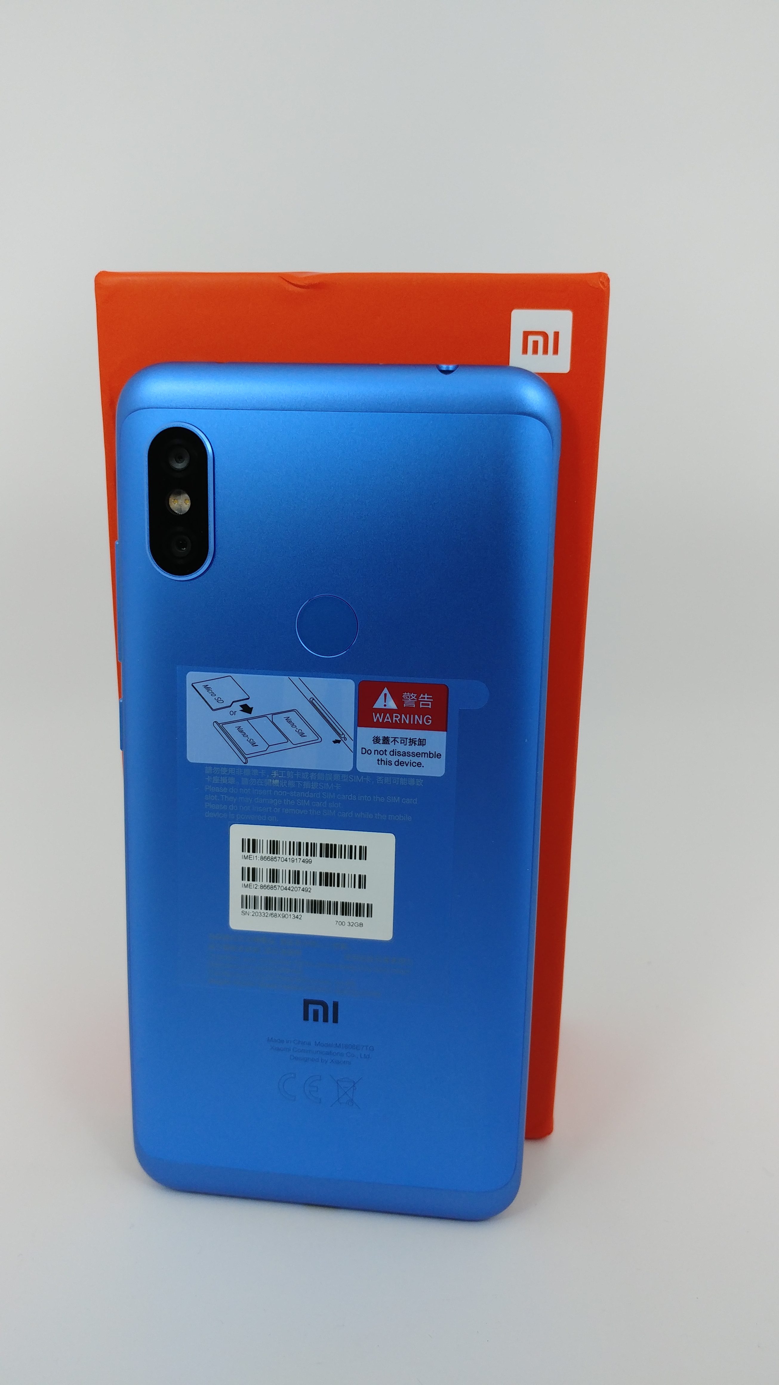 On the back we already discussed about the matte blue aluminum case. Well, we must also specify here the rear AI dual cameras, a set up borrowed from the Note 5 Dual AI Camera handset. There is a small camera bump, so on a flat surface your phone will tremble a little bit. For those interested, the audio jack is still present as well as a second SIM port (or a memory card slot alternative if you prefer it over the second SIM capability) and the IR blaster.