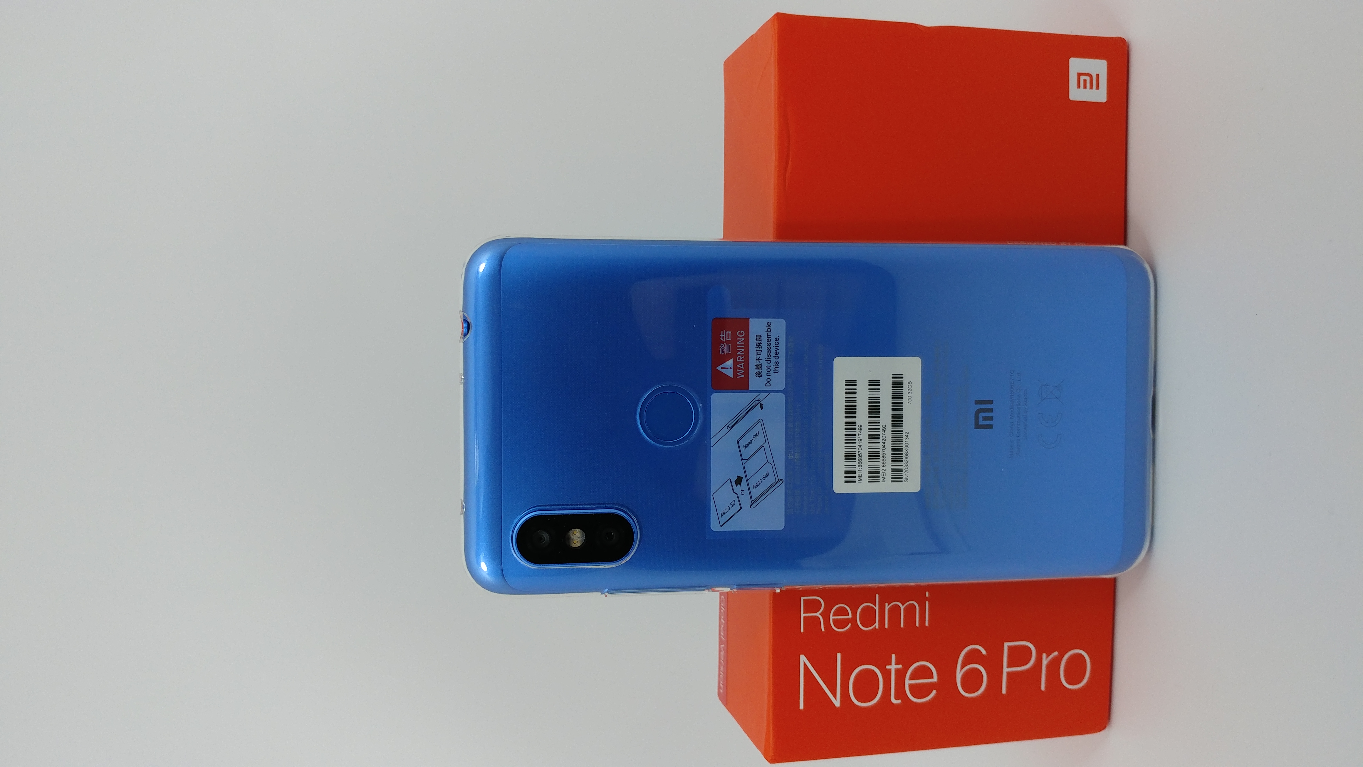 Our Xiaomi Redmi Note 6 Pro model was delivered in an orange box. The package is quite standard, there are no premium features to impress here – after all, we’re discussing about a budget-friendly Android-powered smartphone. Anyway, inside the box we find our phone, the charger and the USB (regular, not type C) cable along with a bonus transparent soft-silicone case. We have the blue model of the Note 6 Pro, which we must say looks well enough for a mix of plastic and aluminum materials.